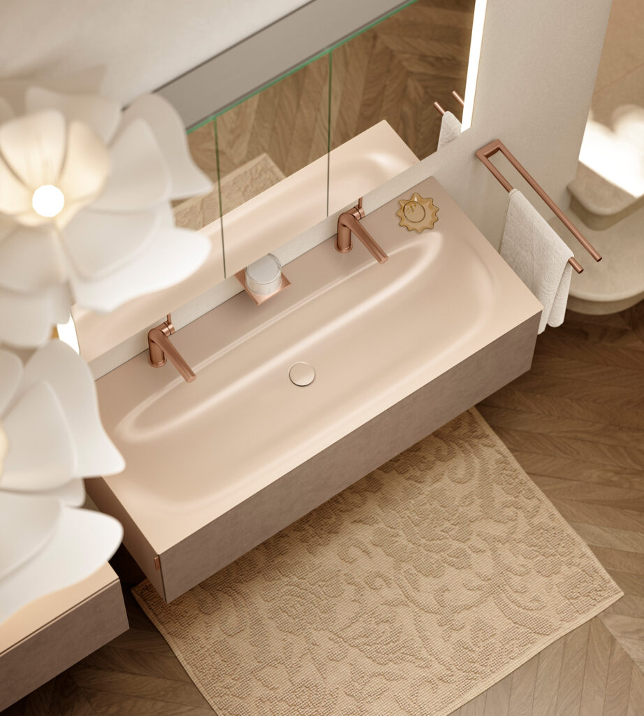 Die EDITION 11 ART setzt auf das Konzept der farblichen Einheitlichkeit und Homogenität. Armaturen und Accessoires in zahlreichen KEUCO Oberflächen verbinden sich nahtlos mit den Badmöbeln und Waschtischen, die in perfekt abgestimmten Farben erhältlich sind. Dadurch entsteht ein Badezimmerdesign, das Ruhe und Eleganz ausstrahlt – ein Ort, in dem alle Elemente ausgewogen ineinandergreifen und ein durchgängiges Design kreieren.